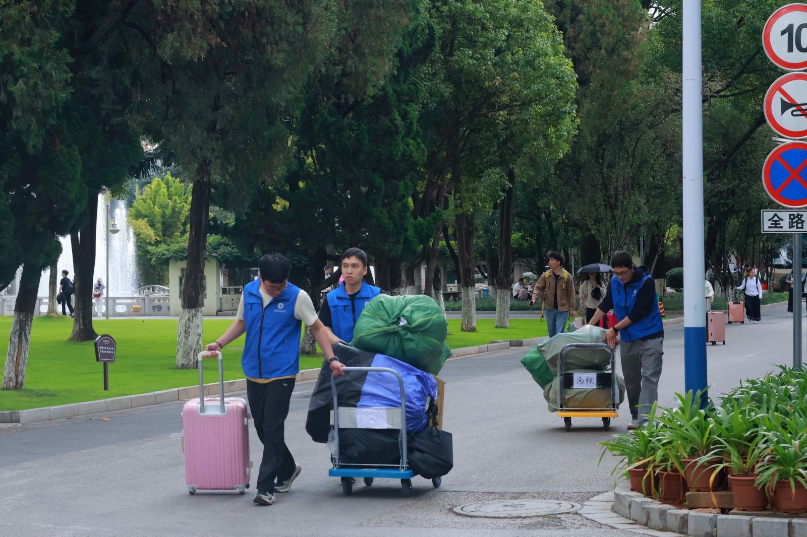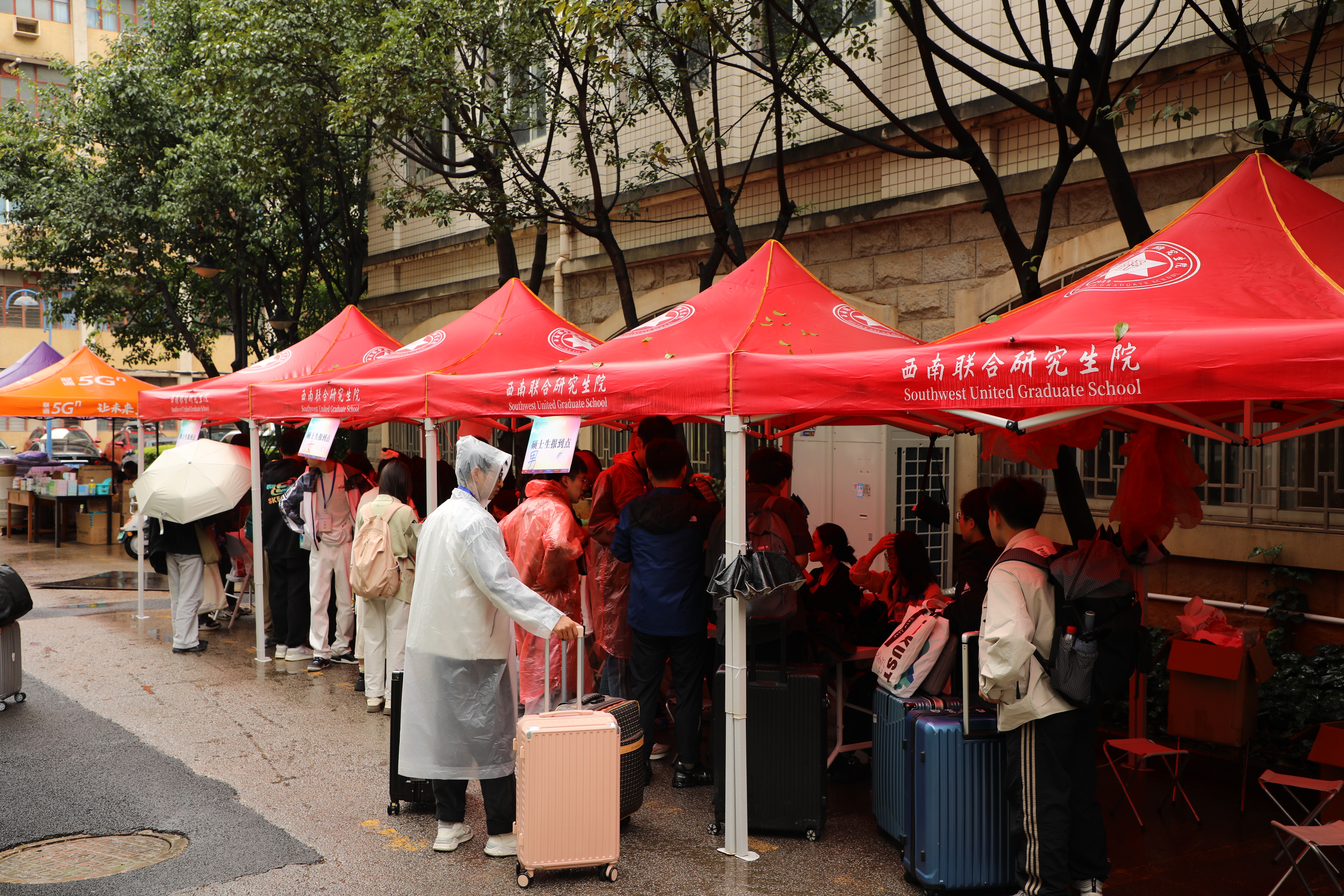 报到期间,西南联合研究生院志愿者团队坚守一线,耐心地回答问题、为新生带路、主动搬运行李。那抹跃动的色彩,是秋日校园最温暖的存在——感谢每一位志愿者的付出,你们让“热烈欢迎新同学”这句话有了温度。