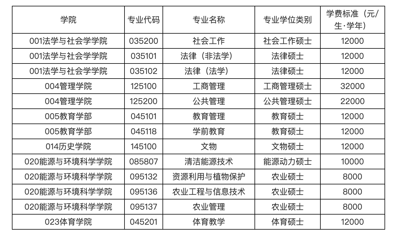 020能源与环境科学学院 | 95137 | 农业管理 | 农业硕士 | 8000 |